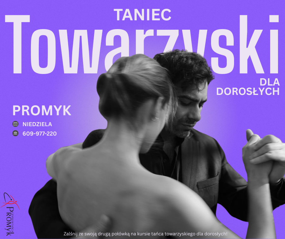 Nowy sezonData: 28 września 𝟮𝟬𝟮𝟱 (niedziela) Godzina: 17:00-18:30 Lokalizacja: Centrum Tańca PROMYK Kurs tańca towarzyskiego w parach. Nauką będą obję... Więcej -